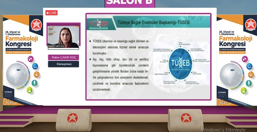 26. Ulusal ve 1. Uluslararası Farmakoloji Kongresi’nde Türkiye Biyoteknoloji Enstitüsü Başkanı Doç. Dr. Rabia ÇAKIR KOÇ yerli aşı geliştirme süreçlerinde TÜSEB'in rolünü anlattı. Ayrıca kongre kapsamında SARS-CoV-2’ye karşı aşı geliştirmesine yönelik, TÜSEB desteği ile çeşitli üniversitelerde yürütülen projelerin sunumları gerçekleştirildi.